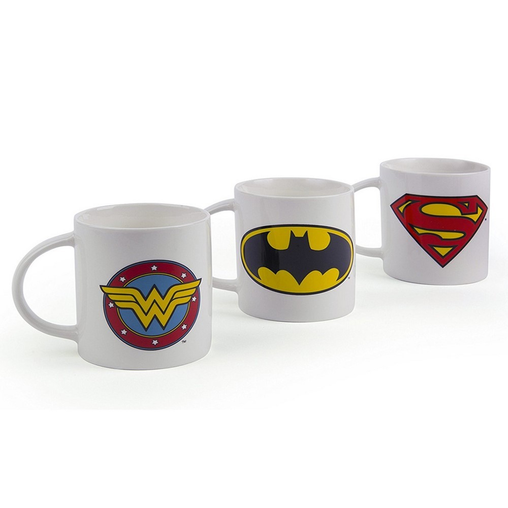 3 cups super heroes Batman Superman Wonder Woman