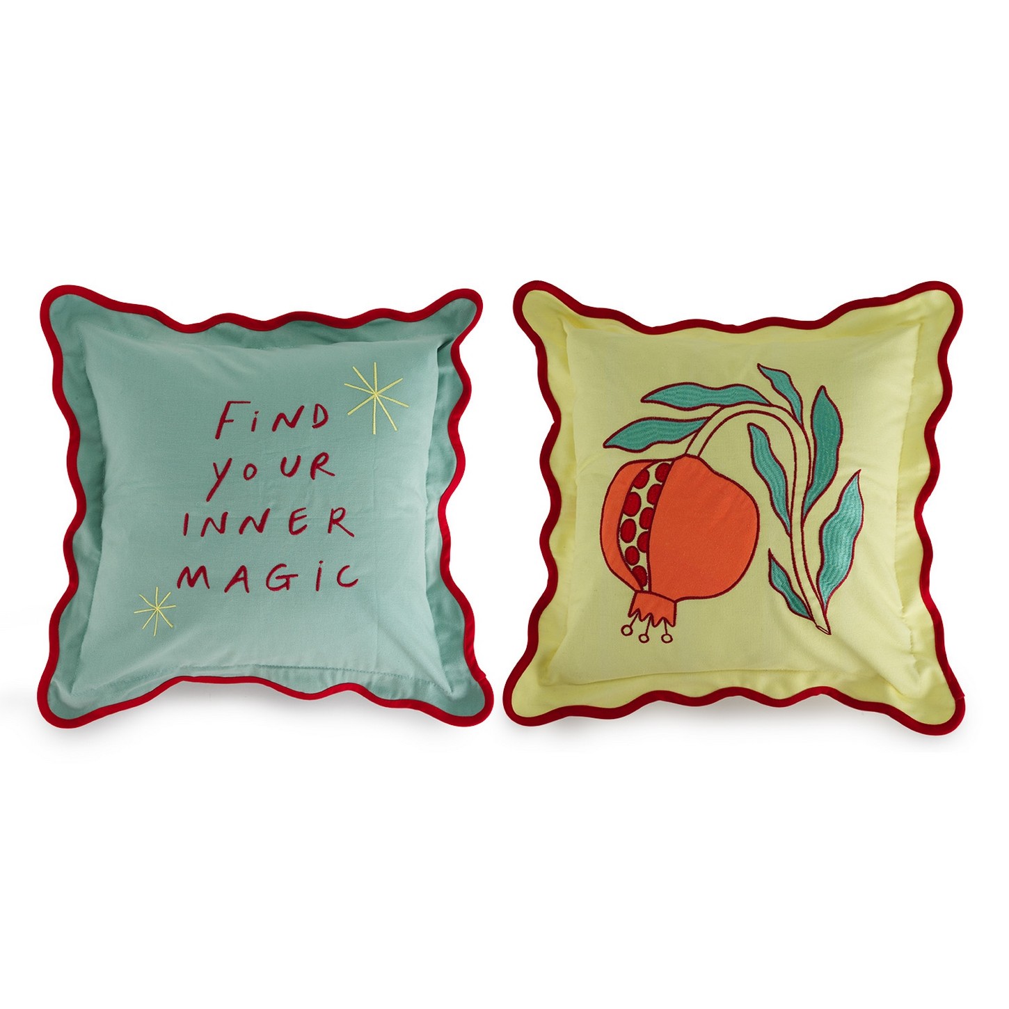 Set of 2 hand-embroidered decorative cushions Pomegranate cm 50