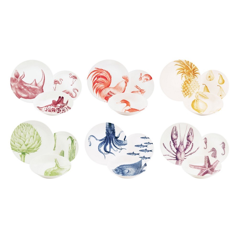 Servizio Piatti 18 Pezzi In Porcellana - Flora e Fauna